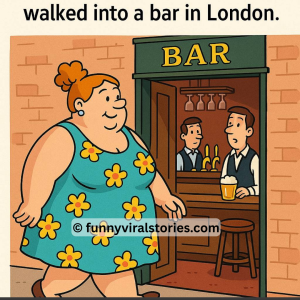 A large woman, wearing a sleeveless sun dress, walked into a bar in London. She raised her right arm, revealing a huge, hairy armpit as she pointed…