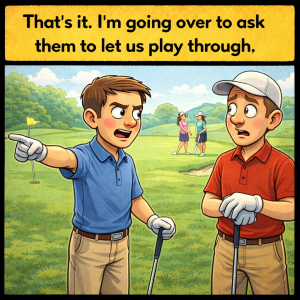 Two men were enduring an excruciatingly slow round of golf. The two women ahead of them were struggling with every shot, hitting into sand traps, water hazards,…