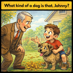 Little Johnny was very proud of his Mangy Mutt. He was playing with it when a passing gentleman stopped and asked Johnny, “What kind of a dog…