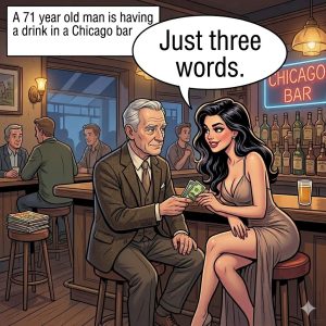 A 71 year old man is having a drink in a Chicago bar Suddenly a gorgeous 19 year old girl enters and sits down a few seats…