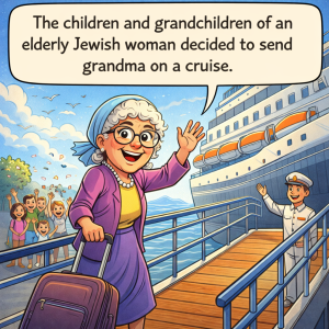 The children and grandchildren of an elderly Jewish woman decided to send grandma on a cruise. Grandma boarded the ship and showed her ticket to the purser….