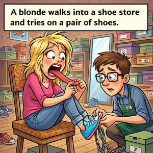 A blonde walks into a shoe store and tries on a pair of shoes. “How do they feel?” asks the salesclerk. “Well, they feel a bit tight,”…