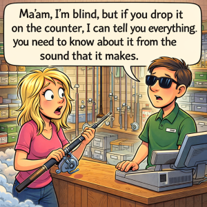 A woman goes into a store to buy a fishing rod and reel. She doesn’t know which one to get, so she just grabs one and goes…