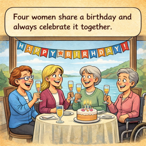Four women share a birthday and always celebrate it together. For their 40th birthday they go to the Lakeview restaurant because the waiters are cute and wear tight…