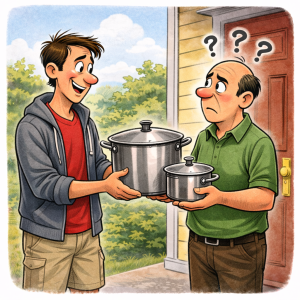 Jay borrowed a pot from his friend. The next day, he gave the friend back the pot, plus another smaller pot. The friend looked at the small…