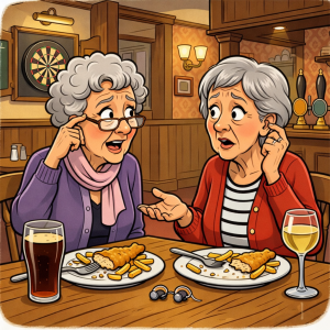 Two elderly women were having a late lunch and a drink at a local pub one afternoon when Ethel noticed something funny about Mable’s ear and said…