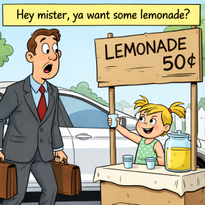 A stockbroker walks past a kid selling lemonade “Hey mister, ya want some lemonade?” a little girl calls to him. The stockbroker is just getting out of…