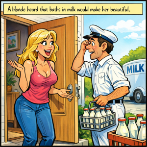 A blonde heard that baths in milk would make her beautiful. She left a note for her milkman to leave 25 gallons of milk. When the milkman…