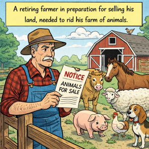 A retiring farmer in preparation for selling his land, needed to rid his farm of animals. So he went to every house in his town. To the…
