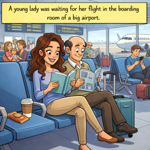 A young lady was waiting for her flight in the boarding room of a big airport. As she would need to wait for a long time, she…