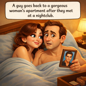 A guy goes back to a gorgeous woman’s apartment after they meet at a nightclub. After an all-night romantic session, he rolls over, grabs his jeans, pulls…