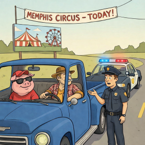 A farmer and his pig were driving down the road when a cop pulled him over. The cop asked the farmer, “Didn’t you know it is against…