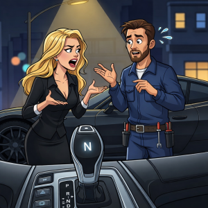 Carolyn, a rich blonde, buys a new automatic Jaguar XKR Sport. She drives the car perfectly well during the day, but at night, the car just won’t…