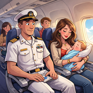During a commercial airline flight, a Navy Chief was seated next to a young mother with a baby in her arms. When her baby began crying during…