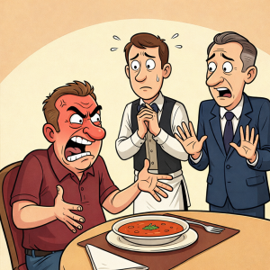 A man orders a tomato soup at a restaurant.. As soon as waiter brings the soup he started yelling at waiter and ask him to taste the…
