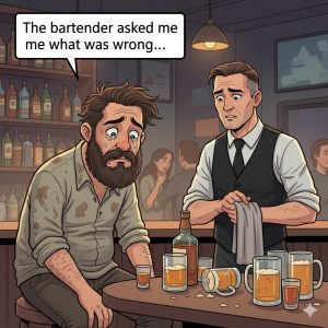 A depressed man walks into a bar and sits down. He looks at the bartender and says, “Give me six double brandies.” The bartender raises an eyebrow….