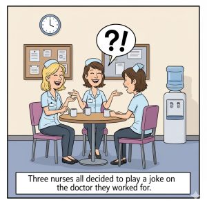 A nurse tells the third man, “Congratulations! You’re the father of quadruplets!”