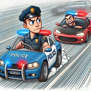 A police officer attempts to stop a car for speeding and the guy gradually increases his speed until he’s topping 100 mph. The man eventually realizes he…