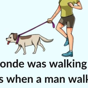 A blonde was walking her dogs when a man walking in the opposite direction says: “Oh my, you have such beautiful dogs.. what are their names?” The…