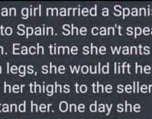 A German girl married a Spanish man & went to Spain. She can’t speak Spanish. Each time she wants to buy chicken legs, she would lift her…
