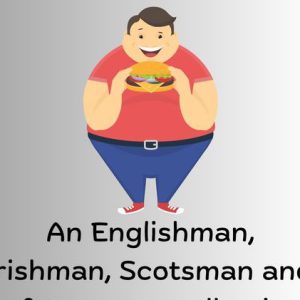 An Englishman, Irishman, Scotsman and a fat man are all going skydiving. When they get to jump the Englishman shouts, “God save England!” The Scotsman shouts, “God…