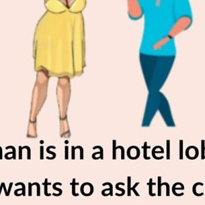 A man is in a hotel lobby He wants to ask the clerk a question. As he turns to go to the front desk, he acciedently bumbs…