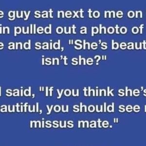 The guy sat next to me on the train pulled out a photo of his wife and said, “She’s beautiful, isn’t she?” I said, “If you think…