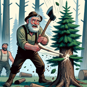 An old man applies for a job as a woodcutter, but the boss doesn’t think he’s fit enough.He tells the boss he is able to cut down…