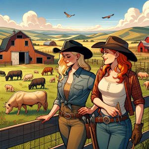 A blonde and a redhead have a ranch. They have just lost their bull.The women need to buy another, but only have $500. The redhead tells the…