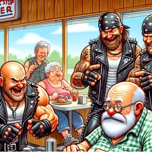 Three scruffy-looking bikers entered the truck stop where an elderly man was dining. The first biker chuckled and sat down at the counter as they passed the…