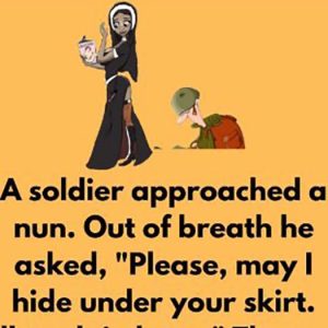 Out of breath, he asked, “Please, may I hide under your skirt? I’ll explain later.” The nun agreed… A moment later two Military Police ran up and…