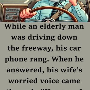 While an elderly man was driving down the freeway, his car phone rang. When he answered, his wife’s worried voice came through, “Herman, I just heard on…