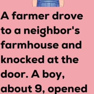 A farmer drove to a neighbor’s farmhouse and knocked at the door. A boy, about 9, opened the door “Is your dad or mum home?” said the…