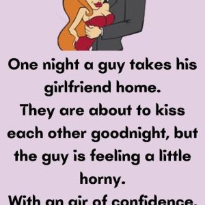One night a guy takes his girlfriend home. As they are about to kiss each other goodnight at the front door, the guy starts feeling a little frisky. With an air of confidence, he leans with his hand against the wall and smiling, he says to her: “Honey, would you take me upstairs?”