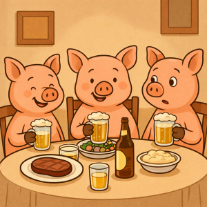 Three Little Pigs went out to dinner one night… The waiter came to take their drink orders. “I’ll have a Sprite,” said the first little piggy.“I’ll take…